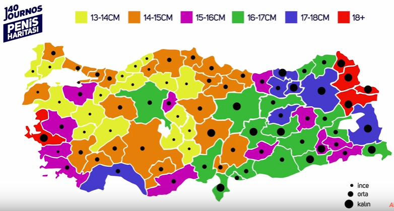140Journos’un hazırladığı video, Türkiye’nin 81 ilinin penis ölçülerini ortaya koyan öznel bir araştırma, çoğu zaman cinsel üstünlük göstergesi olarak düşünülen penis boyunun; erkeklerin davranış biçimleri, kişilikleri ya da dünya görüşleri üzerinde de etkili olabileceğini öne sürüyor.